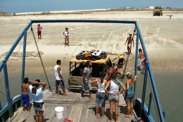 That very day, things went very wrong and on driving the car onto the ferry in Camocim, a town about 1 hours drive from Jeri, both, the ferry driver and the car driver made a huuuge mistake .. and our truck almost sank with all our gear!!!