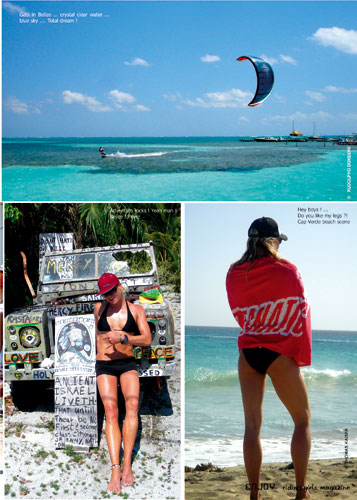 The photos in the article originate from various trips all around the globe, amongst them Mauritius, Cape Verde, Belize, Brazil and more. Have fun – and for all the chicks out there who haven’t given kiting a go yet: just do it, you’ll love it 4 sure !!