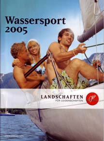 Tourism brochure of the Upper Austrian Tourism Organisation, featuring photos of Kitegabi flying high in front of the spectacular scenery of the ‘Traunsee’ (lake Traun), a poular tourist destination in the ‘Salzkammergut’. The Traunsee is one of Austrias most beautiful lakes and excellent place for wind-enthusiasts of all fields: sailing, wind- and kitesurfing.